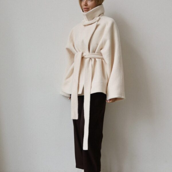 Short Wool-Blend Milk Coat