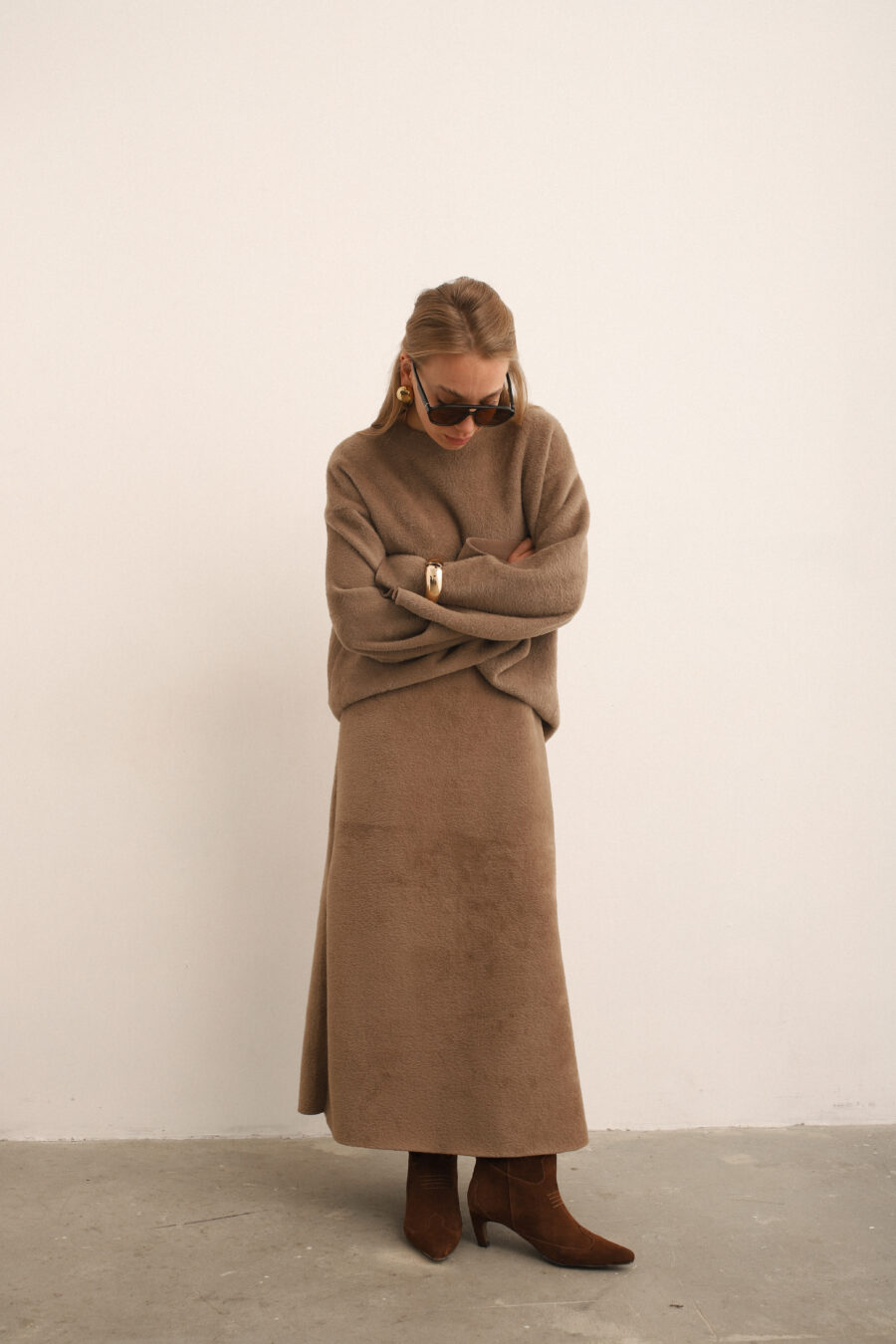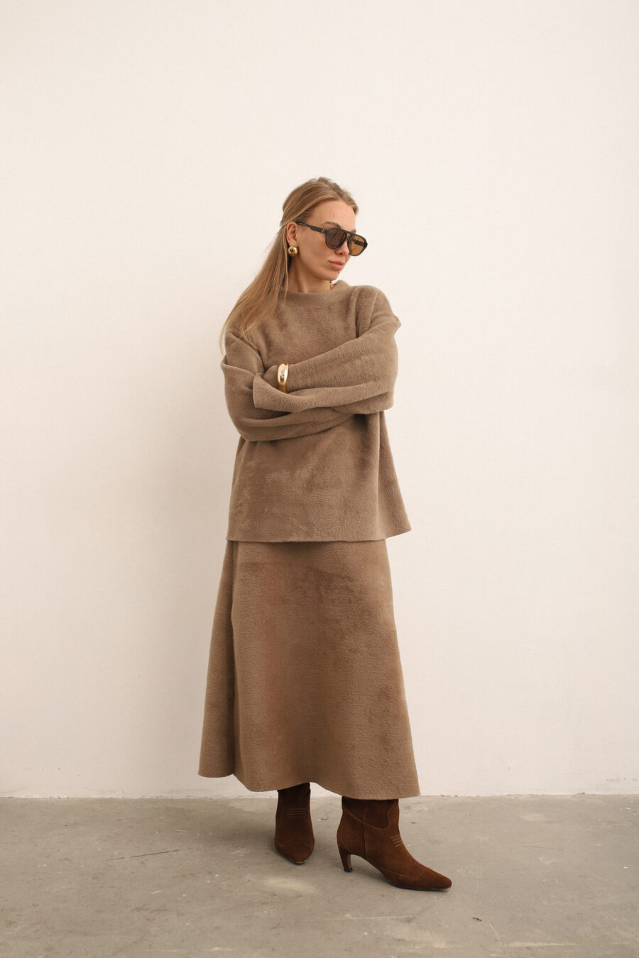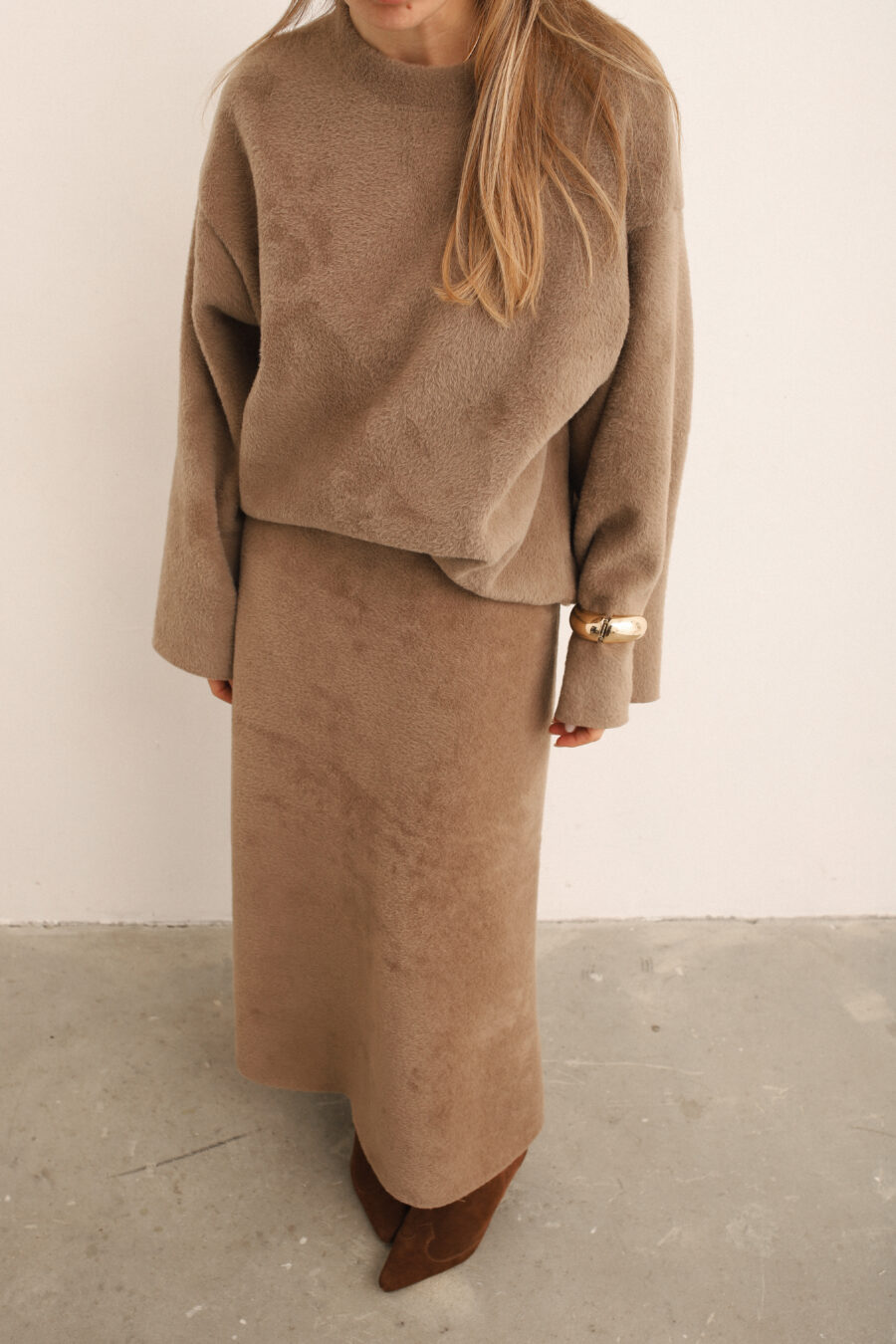 / Beige Skirt/Sweater Suit