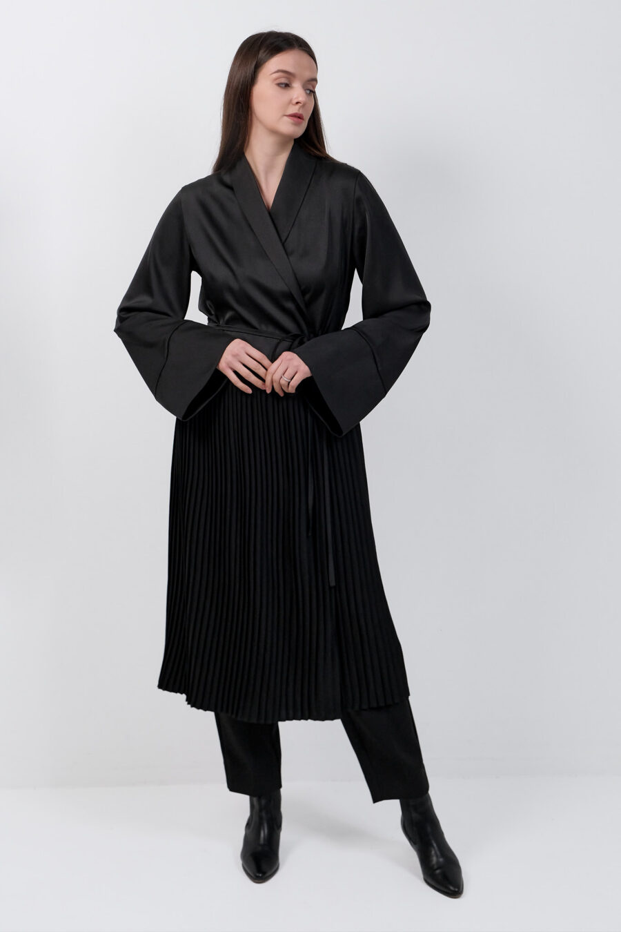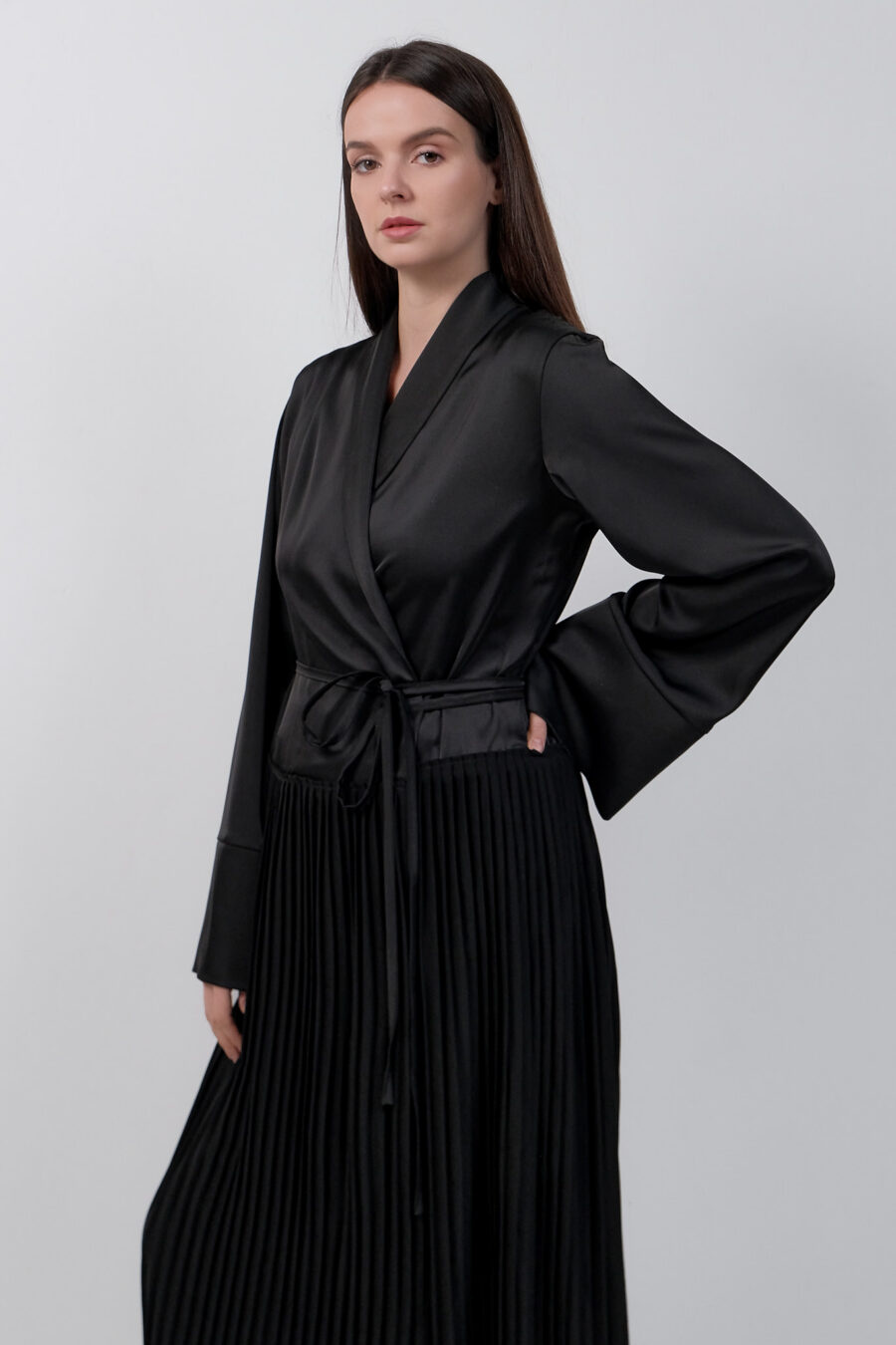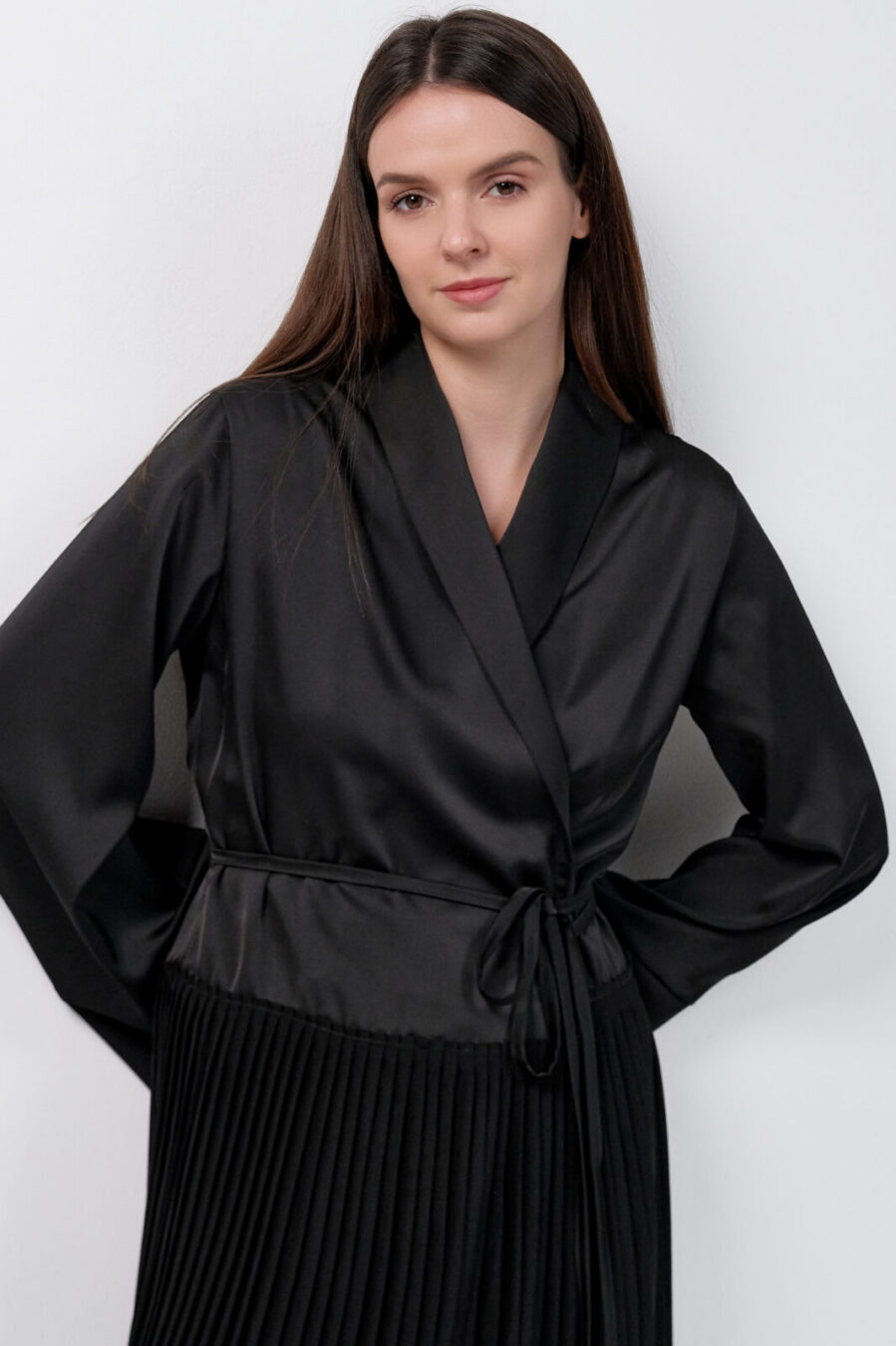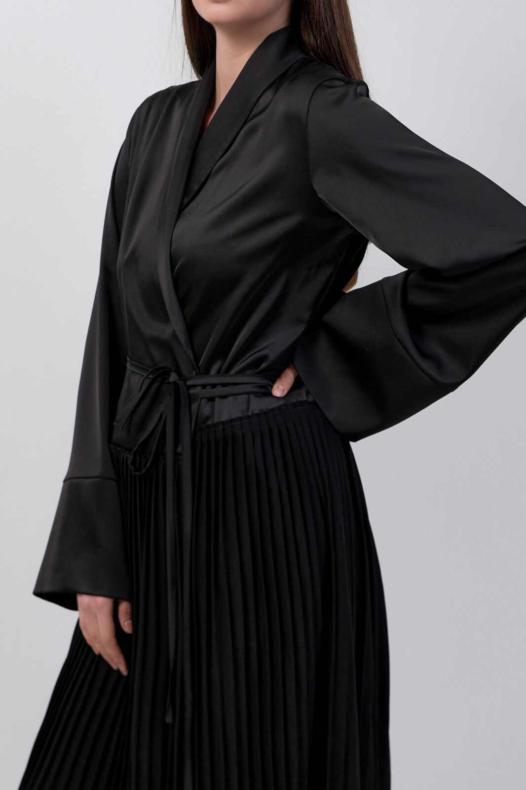 Black Dress Kimono With Pleats