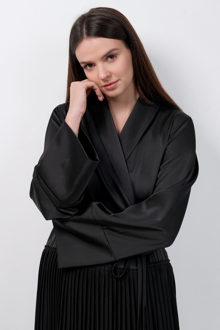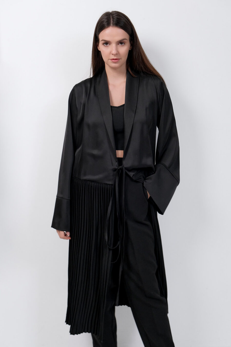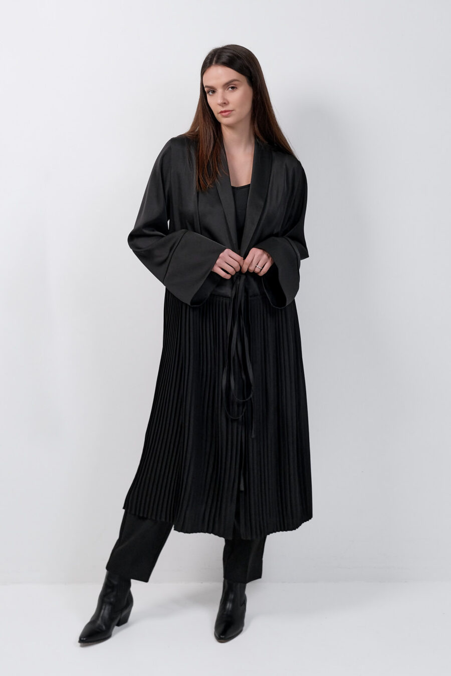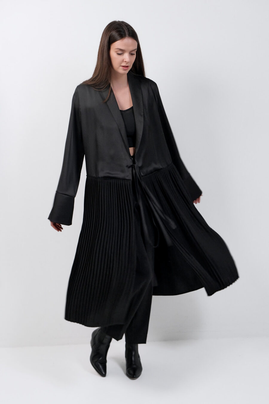Black Dress Kimono With Pleats