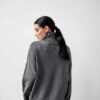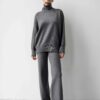 The graphite knit suit from the Grace series will win you over after the first fitting. Gentle on the skin and pleasant to the touch, the set consists of a spacious oversized sweater with a high collar and loose-fitting pants. The merino wool model is reinforced with viscose for durability and shape retention.