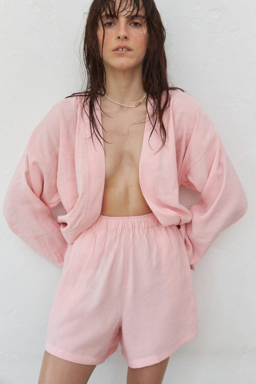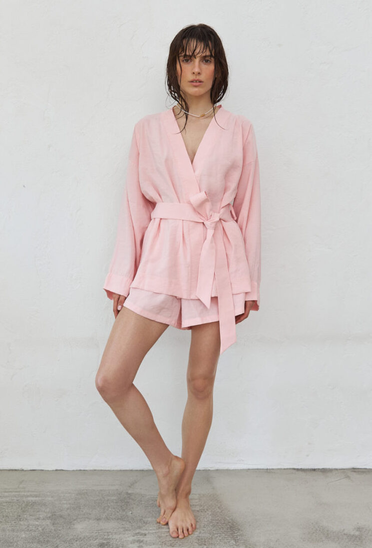 Pink Kimono and Shorts Set