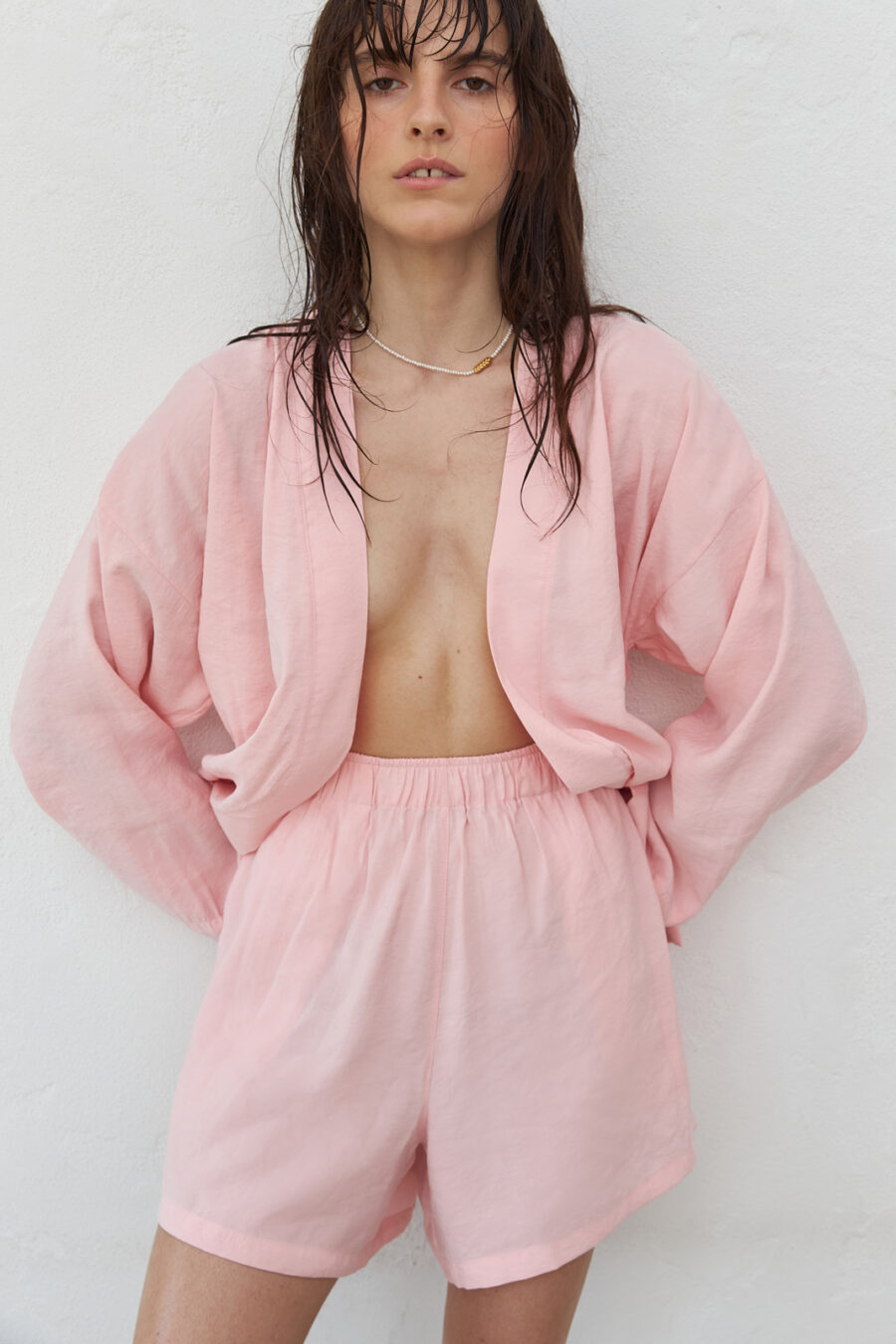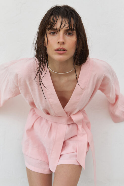 Kimono and shorts set made of modal (viscose). The shade is soft pink. The fabric is easy to care for, practically does not require ironing. Kimono one size, shorts according to size